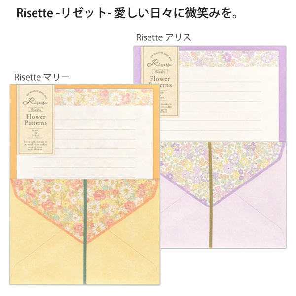 エヌビー社 レターセット Risette 4670113 マリー / 4670116 アリス A5 縦215×横162mm 便箋8枚・封筒4枚入 奉書紙 横書き 和紙 洋形2号 洋2 小花柄 レター 手紙 大人 おしゃれ 御洒落 かわいい 可愛い 上品 お礼状 結婚式 記念日 友達 通年