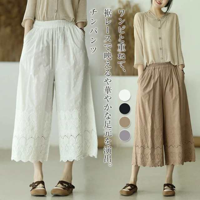 ペチパンツ ロング レース 綿 ペチコート ペチスカート レディース パンツ 2タイプ 透かし雕り ロング 刺繍 綿 透かし雕り裾 コットン ゆったり インナー 重ね着 おしゃれ ナチュラル ワンマイルウェア 裾レース ペチスカート ホワイト ブラック キャメル パープル F