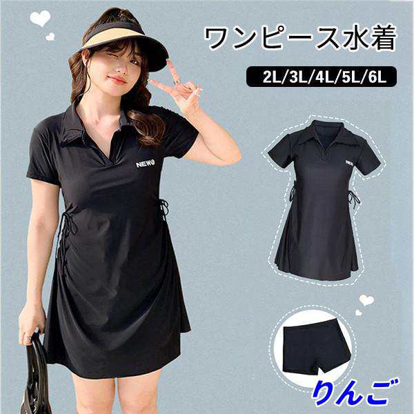 水着 無地 ワンピース水着 ブラック 大きいサイズ 服みたいな 半袖 水泳 中学生 高校生 大学生 夏 小胸 ぽっちゃり 韓国風 体型カバー 露出控え 可愛い