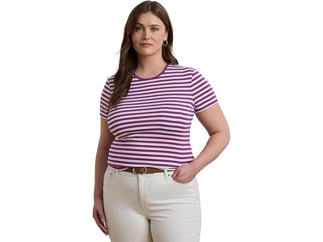 (取寄) ローレン ラルフローレン レディース プラス サイズ ストライプド ストレッチ コットン クルーネック ティー Lauren Ralph Lauren women Plus Size Striped Stretch Cotton Crewneck Tee Purple Dawn/White