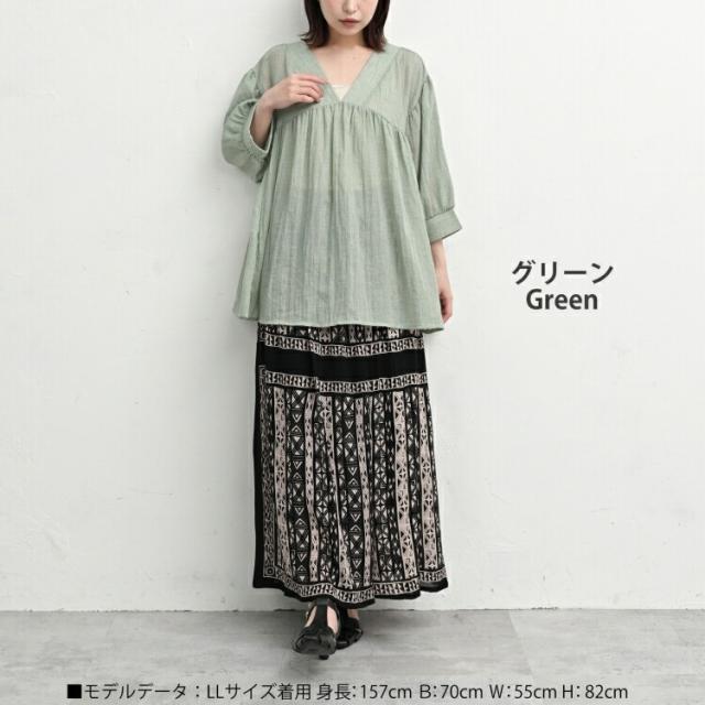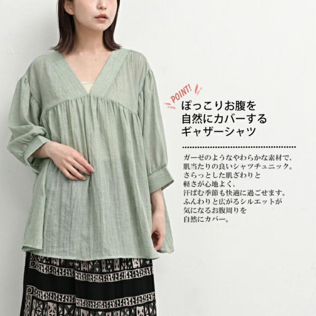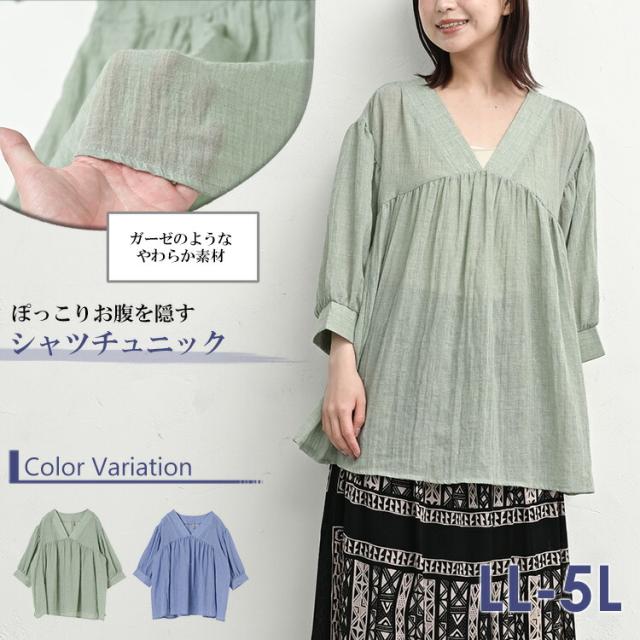 【メール便対応】ぽっこりお腹を自然にカバーするシャツチュニック。 XXXXL 2XL 3XL 4XL 7分袖トップス 透け感 sheer ゆったりサイズ ぽっちゃり女子 プラスサイズ 大きいサイズ レディース 7分袖トップス 7分袖ブラウス 7分袖チュニック パフスリーブ ギャザーブラウス シャツチュニック Vネック 7分袖 8分袖 七分袖 八分袖 ハイウエスト ぽっこりお腹を隠す Aライン 無地 春服 夏服 春物 夏物 春トップス 夏トップス 綿混 体型カバー お尻まわりカバー お尻が隠れる着丈 お尻すっぽり丈 チュニック丈 ゆったり 大きめ 大人 カジュアル フェミニン ナチュラル 大人可愛い きれいめ かわいい 着こなし おしゃれ 定番 春コーデ 夏コーデ ファッション 大きめ 女性 婦人用 ミセス 30代 40代 50代 2025 夏新作 春 夏 青 緑 LL 3L 4L 5L 13号 15号 17号 19号 cla-ss-tp0551