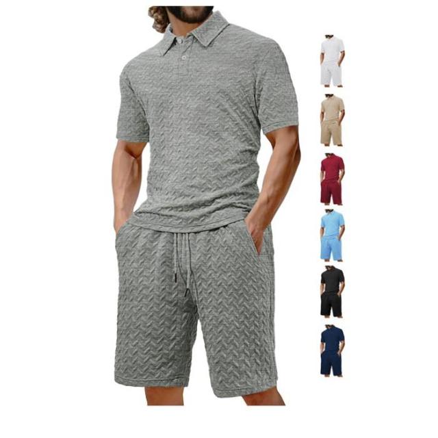 ジャージ 上下セット 凹凸 メンズ ポロシャツ ハーフパンツ ゴルフウェア 父 30代 40代 50代 セットアップカジュアル ビッグサイズ 快適 無地 通気 上下スウェット