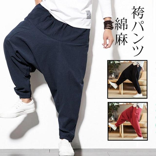 袴パンツ メンズ リネンパンツ アラジンパンツ 大きいサイズ 綿麻 ゆったり