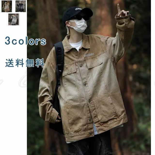 デニムジャケット グラデーション 刺繍 デニムシャツ メンズ レギュラーカラー ポケット付き ジージャン 長袖 コート デニム カジュアル ゆったり 春 秋