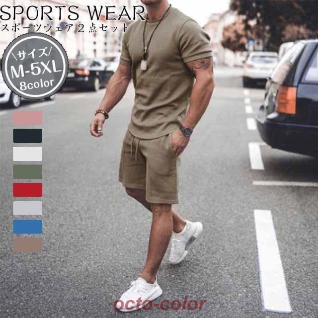 スポーツウェア メンズ セット 半袖 ランニングウェア ジム トレーニングウェア 上下セット ウォーキング 運動着 夏 薄手 吸汗速乾 軽量 部屋着