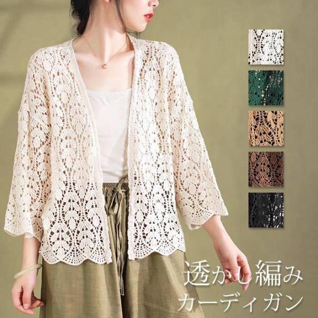 カーディガン レディース トップス 長袖 レース 透かし編み サマーニット 涼しい シアー 鍵編み 薄手ニット 羽織り UV対策 紫外線対策