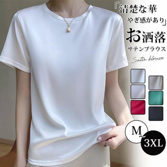 ブラウス 接触冷感 サテン 大きいサイズ レディース きれいめ サテン風 光沢 薄手 トップス 半袖ブラウス チュニック フォーマル エレガント 上品 オフィス 部屋着 薄手 白 黒 夏 春 面接 通勤 事務服 オフィス 無地