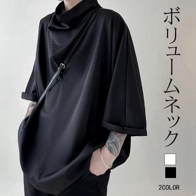 Tシャツ メンズ モード系 Tシャツ メンズ ボリュームネック Tシャツ 接触冷感 メンズ 大きいサイズ Tシャツ メンズ ユニセックス 半袖 Tシャツプルオーバーパーカー ストリート 兄系 地雷系 ファッション