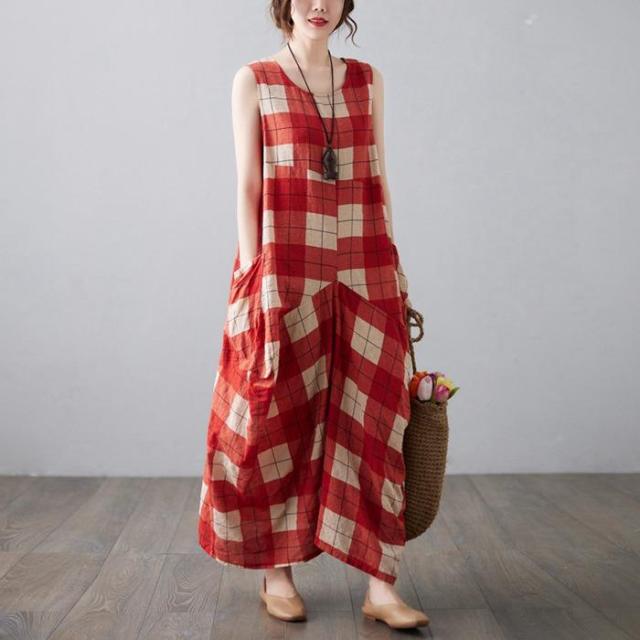 ワンピース マキシワンピース レディース 春 夏 チェック ノースリーブ ロング丈 フレア Aライン リゾート 大きいサイズ カジュアル 大人 ゆったり 体型カバー きれいめ