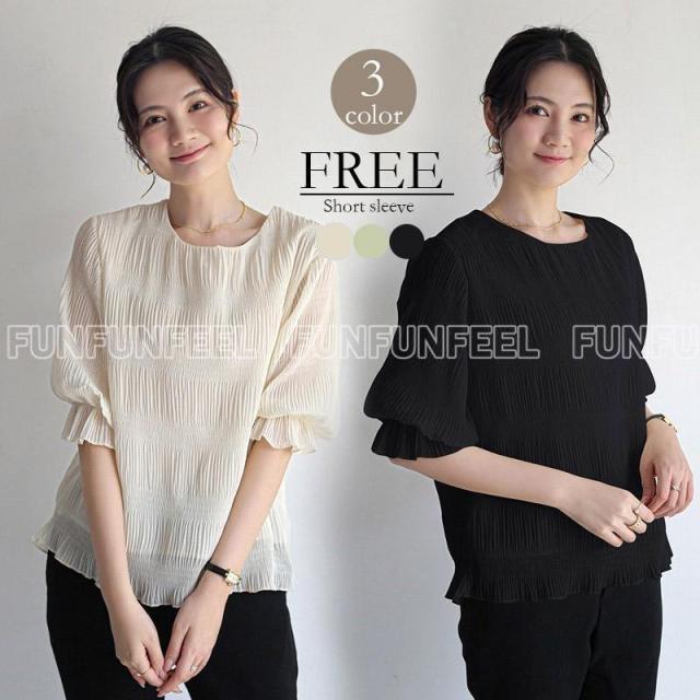 Tシャツ Uネック ブラウス 春 シフォン シャーリング ギャザー レディース シアー レース トップス シアートップス レ 薄手 母の日ギフト