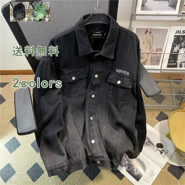 刺繍 デニムジャケット デニムシャツ グラデーション メンズ レギュラーカラー ポケット付き ジージャン 長袖 コート デニム カジュアル ゆったり 春 秋