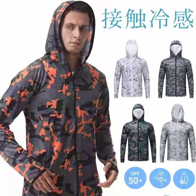ラッシュガード メンズ 水着 UVカット ラッシュパーカー 接触冷感 長袖 パーカー 迷彩柄 UPF50+ スポーツ 速乾 軽量 紫外線対策 アウター 夏 接触冷感 ストレッチ ジムウェア フード付き ランニング 登山 釣り 大きいサイズ
