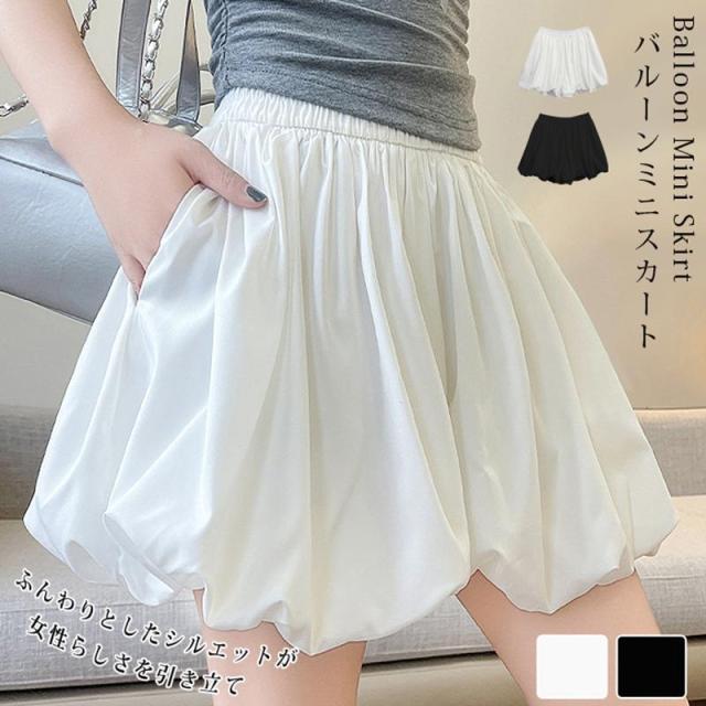 スカート ミニスカート レディース バルーンスカート 夏 レディース ウエストゴム バルーンミニスカート ふんわり 韓国風 ホワイト ブラック