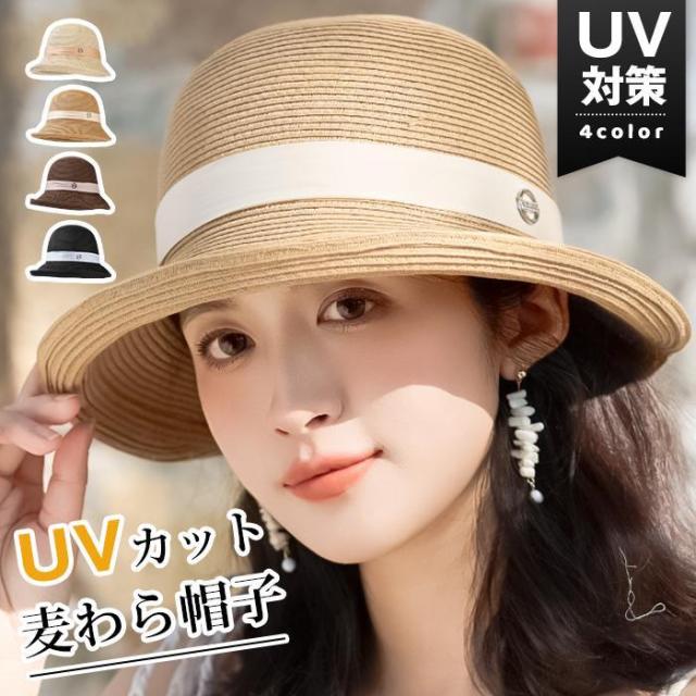 麦わら帽子 ハット 帽子 バケットハット つば広 ツバ広帽子 日よけ帽子 レディース UVカット 日よけ ハット