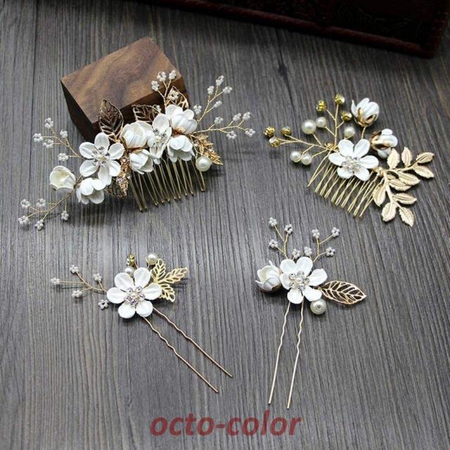 髪飾り 4点セット かんざし ヘアコーム ヘアピン 花 ボタニカル 和装 洋装 結婚式 着物 成人式 卒業式 フォーマル パーティ ヘアアクセサリー 振袖 留袖 髪留め