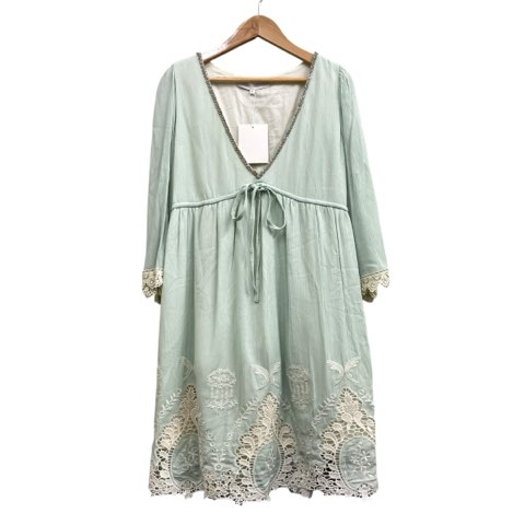 【中古】マーキュリーデュオ タグ付き チュニック ワンピース ビーズ刺繍 レース プルオーバー ライトグリーン F