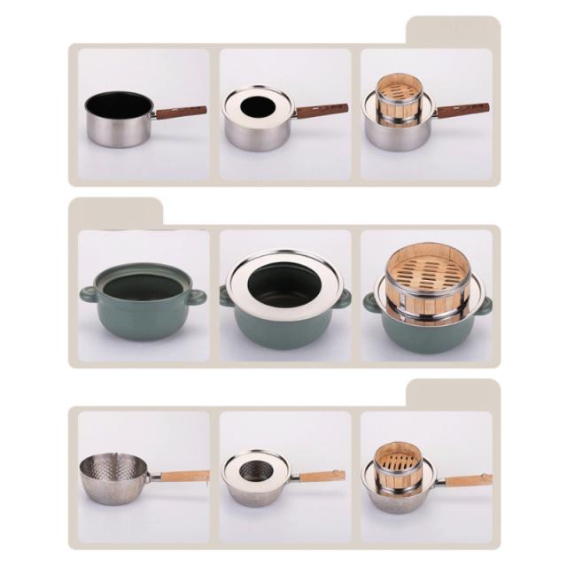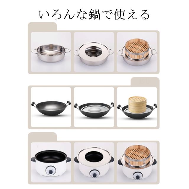 また、持ち手が上に出ていて蒸し板が安定しない鍋や、注ぎ口のある鍋では蒸気が漏れてうまく蒸すことができませんのでご注意ください。