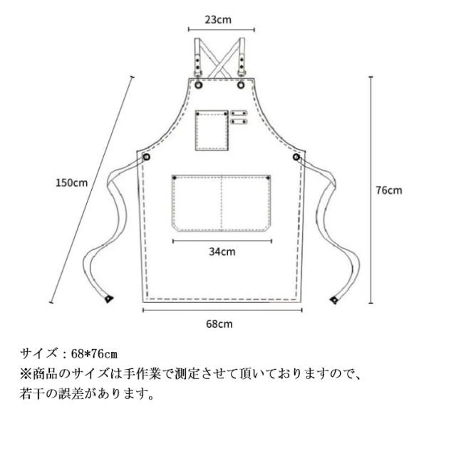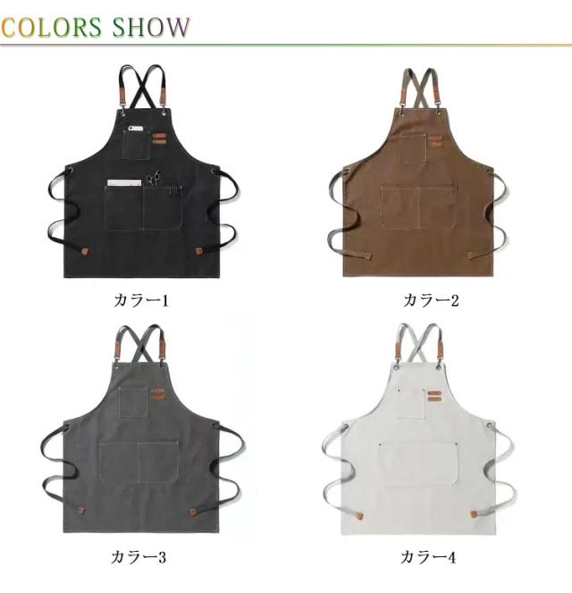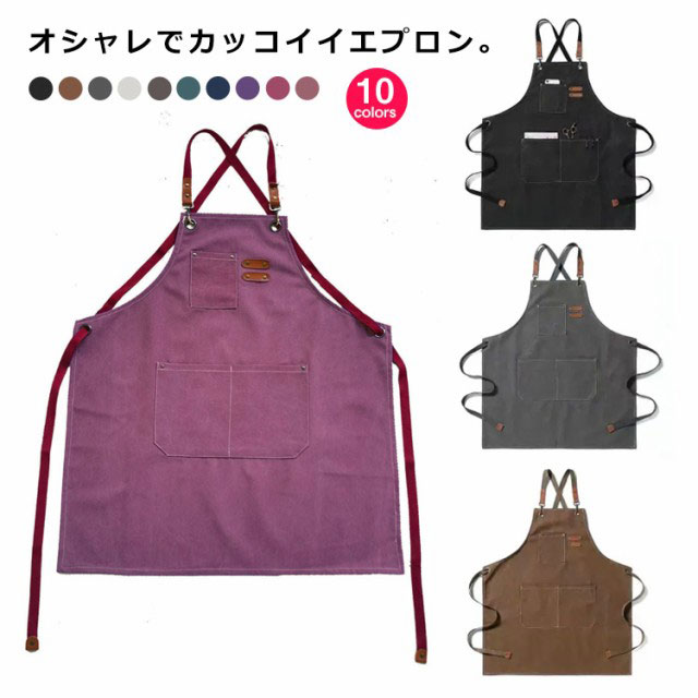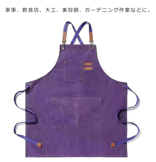 | オシャレでカッコイイエプロン。 キャンバスを採用しており、収縮しにくく、しわになりにくいなどの特性があります。 背中はクロスデザインで、肩ひもの長さを調整することができ、快適な着用感があります。 多機能ポケットは、実用的なデザインになっており、ペン、スマートフォン(携帯電話)、ハサミ、メモ帳などの実用的なツールを収納することがでいます。 家事、飲食店、大工、美容師、ガーデニング作業などに。 お店の制服としてや保育士さんなどお仕事着としてもオススメです。 | |