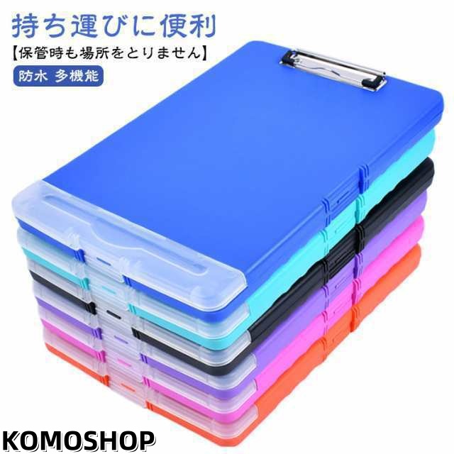 | A4用紙は200枚以上収納できます。B5ノートやルーズリーフも収納可能 ボードの下部には筆記用具を収納できるポケットがあります。ペン、消しゴム、定規などを収納できます。 *A4のクリアファイルは収納できません。構造上A4用紙よりも大きく作られているためです。ご了承ください。 一か所に必要な文房具を収納できるので、持ち運びに便利。 またボードの裏にある溝は、指がちょうどフィットするように設計されています。 手になじむように作られています。 一般的なクリップボードと比べて、使いやすいです。 資料の取り出し、文字を書く作業をスムーズに行うことができます。 研修、工事現場、外部調査、スポーツ等でも使えます。 裏面にフック用の穴があります。壁掛けができます。 簡単に保管できます。 プラスチック製なので、水にも強いです。 雨の時も外で使うことができます。 | |