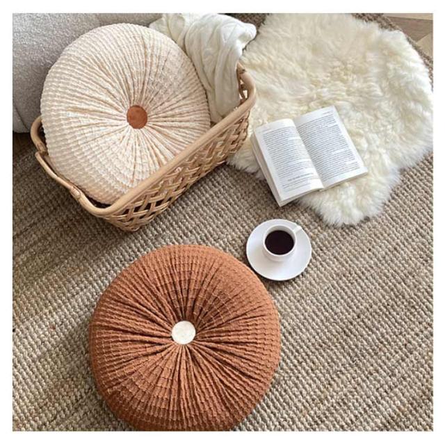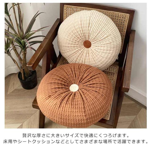 クッション おしゃれ ラウンドクッション 韓国 インテリア フロアクッション 可愛い 丸 円形 ラウンド ベルベット ベロア 床 座る 小さい プフ ギャザー プリーツ お花 ピンク 白 ホワイト ベッド ソファ 背もたれ