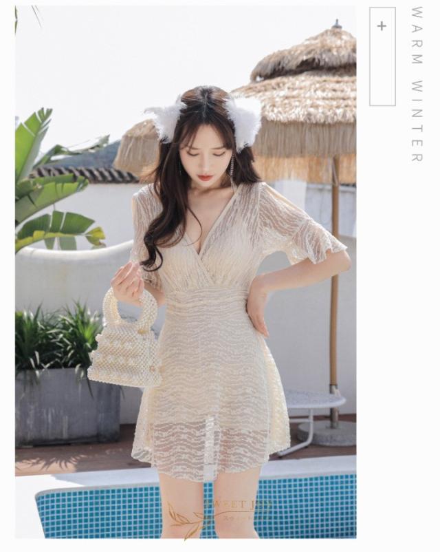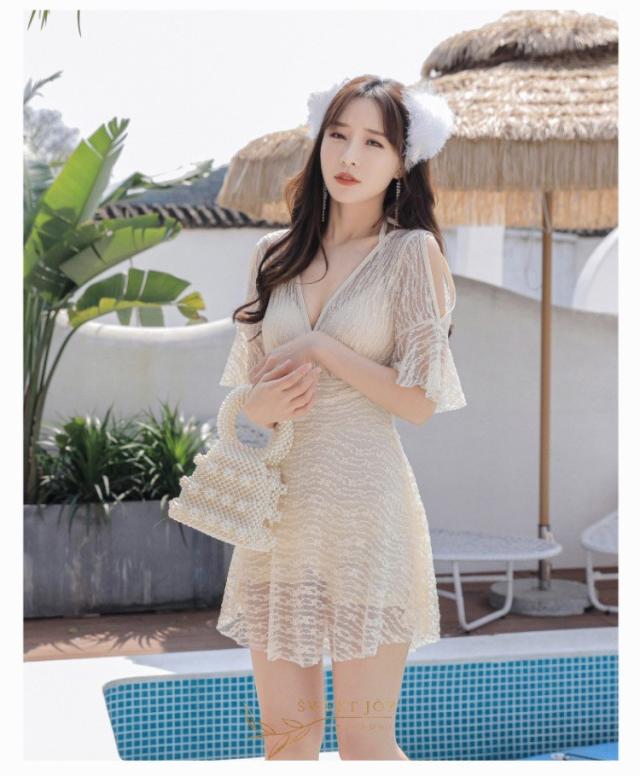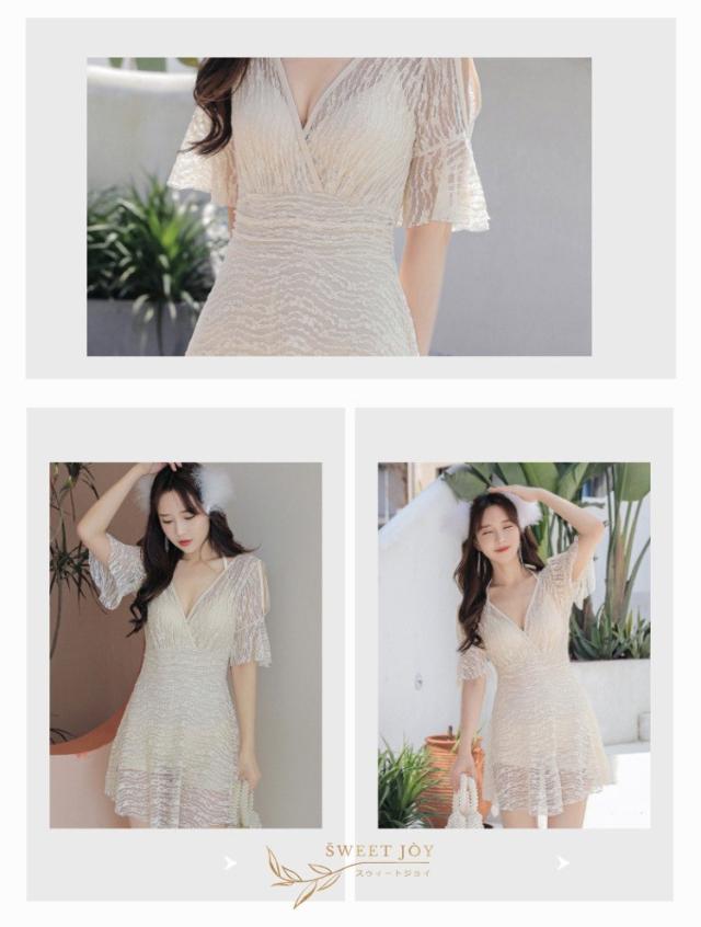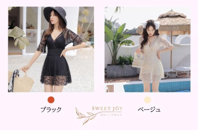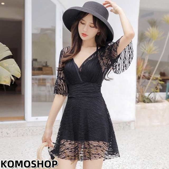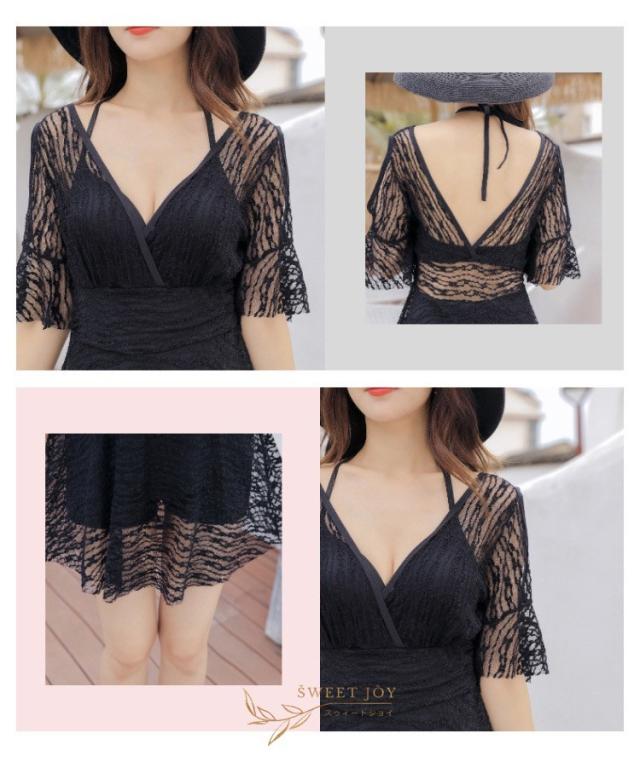 水着 レディース 体型カバー 水着ワンピース型 半袖 サロベット水着 黒レース ショットパンツ 小胸バンドゥ 40代 オシャレ韓国風 スイムウェア ママ水着