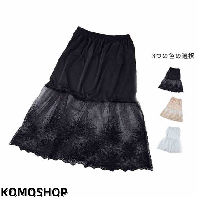 送料無料 ペチコート 透け防止 レディース フリル レース かわいい 花柄 ブライダル スカート 見せるインナースカート ペチアンダースカート ブラック ホワイト 肌色