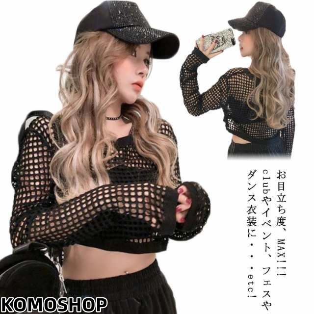 メッシュ トップス レディース ショート丈 レース トップス ダンス 衣装 へそだし 透け感 シースルー セクシー カットソー 長袖 ヒップホップ 韓国 黒 ブラック