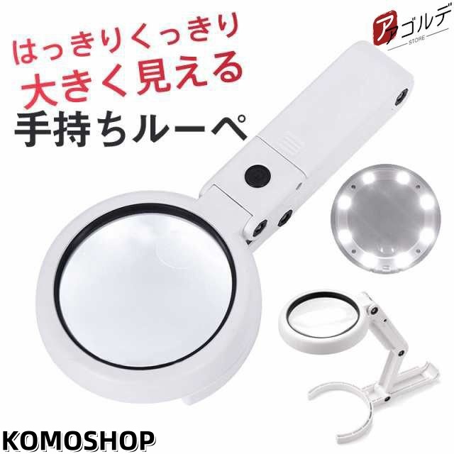 拡大鏡 ルーペ 手持ちルーペ 電池式 スタンド 倍 倍 個LEDライト付 読書ルーペ 虫眼鏡 昆虫観察 宝石鑑定 精密作業