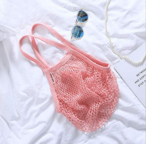 HJ コットンメッシュバッグ ビーチメッシュバッグ エコバッグ 買い物バッグ 砂 おもちゃ 水遊び 砂遊び ビーチ 温泉 (ピンク)