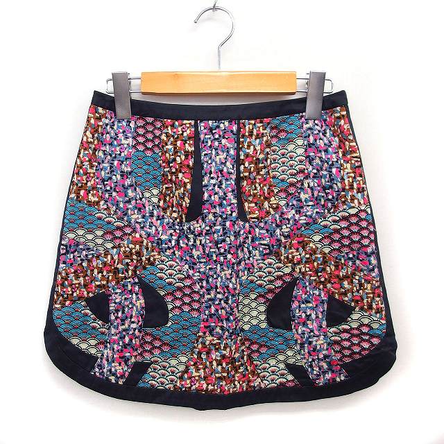 【中古】シンシアローリー CYNTHIA ROWLEY 和柄 ミニスカート パッチワーク ラウンドヘム 2 ネイビー /FT レディース