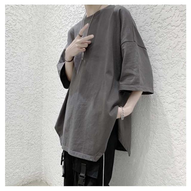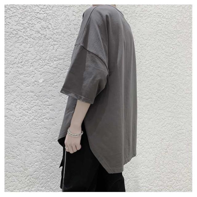 モノトーン トップス 半袖tシャツ ロングTシャツ ビッグT オーバーサイズ サイドスリット カットソー ビッグtシャツ メンズ ビッグシルエット 変形Tシャツ ユニセックス ストリート系 モード系