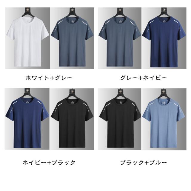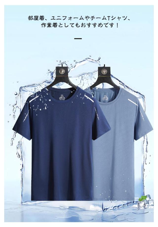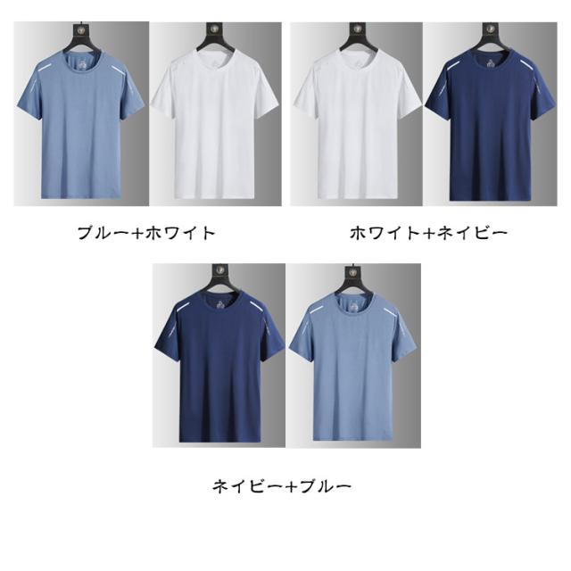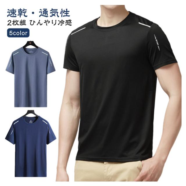 吸汗 ゴルフ Tシャツ 半袖tシャツ 【2枚セット】メンズ 無地 ストレッチ 【2枚セット】メンズ スポーツ 接触冷感 ティーシャツ クルーネック 速乾 涼しい メッシュ UVカット トップス ドライ 通気性 夏用 インナー 作業服 作業着 軽量 シンプル 大きいサイズ