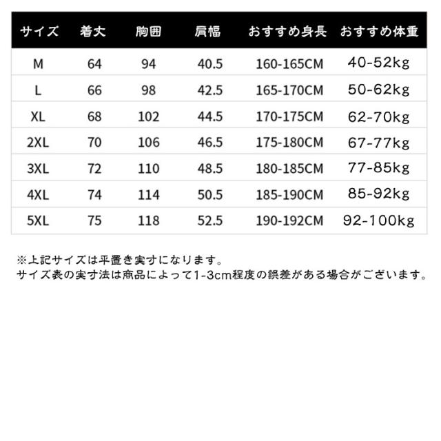 | サイズ | M L XL 2XL 3XL 4XL 5XL |