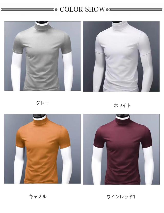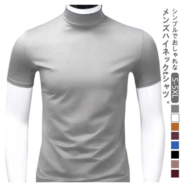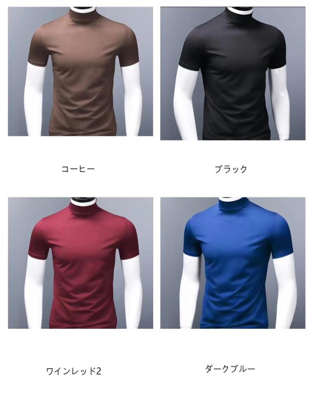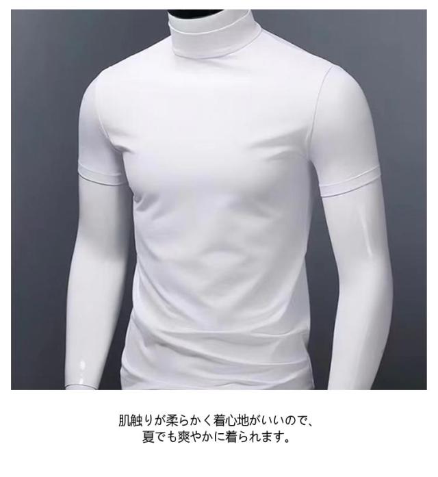 メンズ カットソー Tシャツ カジュアル ティーシャツ 半袖 tシャツ tシャツ 春夏 接触冷感 半袖 ハイネック 無地 トップス 男性 ゴルフウェア S-5XL 大きいサイズ シンプル 送料無料 夏物