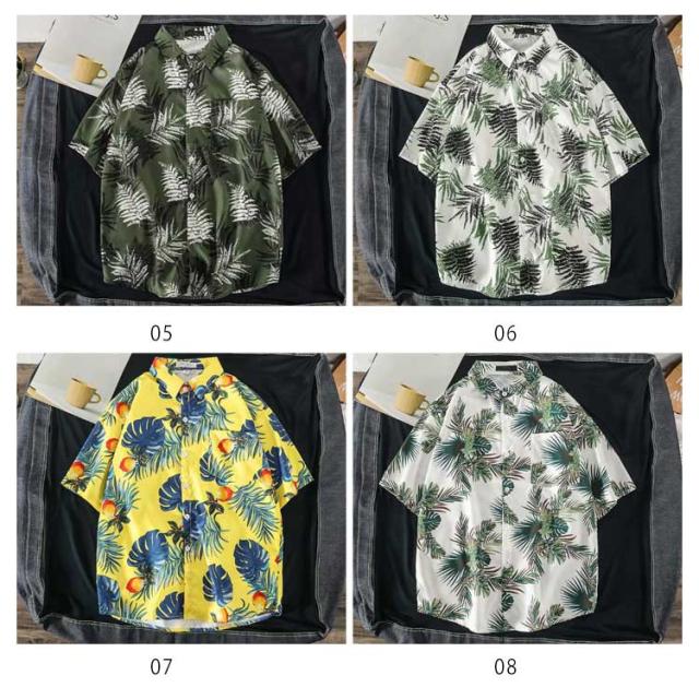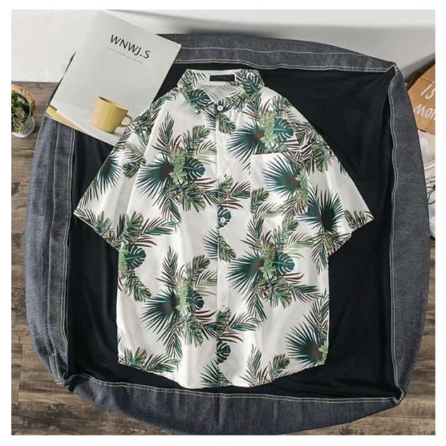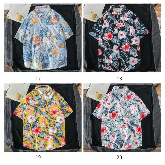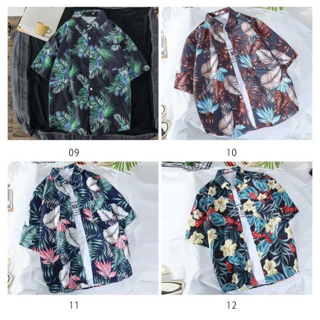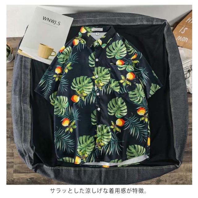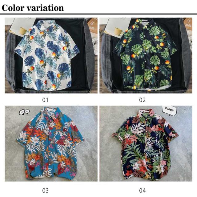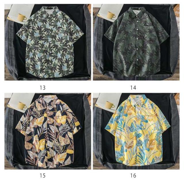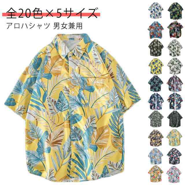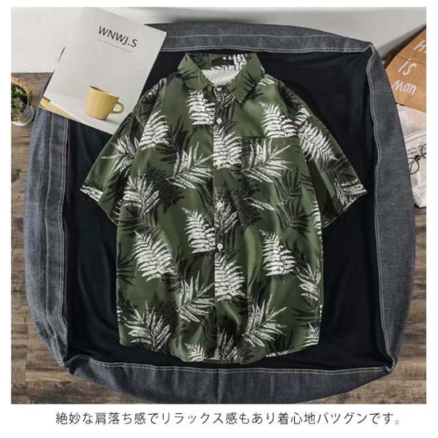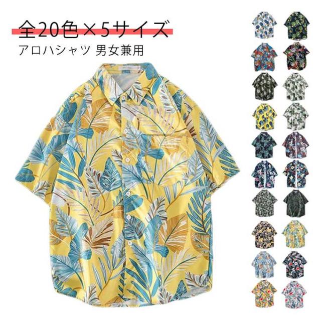 ペアルック メンズ 葉柄 総柄シャツ シャツ 半袖 レディース 大きいサイズ レディース カジュアルシャツ 開襟 アロハシャツ メンズ ゆったり メンズシャツ 半袖シャツ メンズ 襟付き 男女兼用 花柄