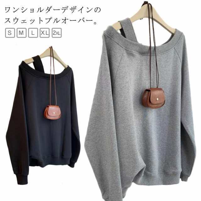 トレーナー ワンショルダー トップス レディース トレーナー オフショル ゆったり ラウンドネック ゆる袖 スウェット
