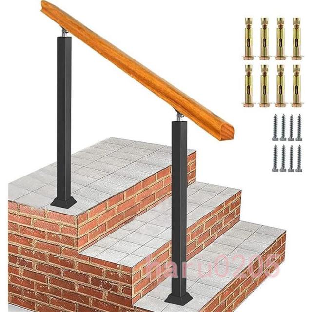手すり 屋外玄関階段手すり無垢材の手摺り マットブラックアイアン階段手すり角度調整可能高齢者用サポート 屋外手すりに適しています