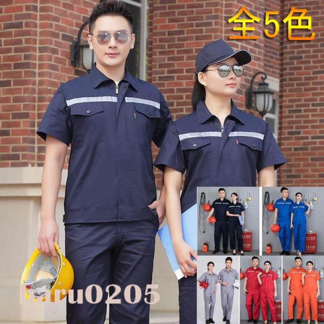 作業服 作業着 夏用 半袖 上下セット メンズ レディース 2点セット 長ズボン 反射ストラップ 無地 吸汗速乾 夏 作業ズボン ワークウェア 男女兼用