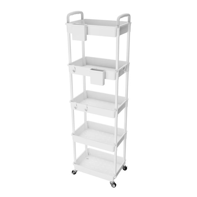 ◆商品名:SIUSA キッチンワゴン ワゴン キャスター付き 5段 スリム 収納ワゴン 大容量 収納カート ハンドル/収納カップ付き ペットボトル収納 洗面