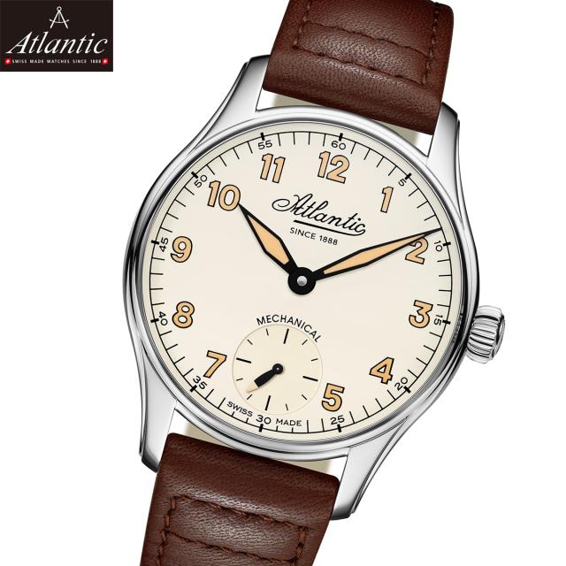 マニュファクチュールキャリバー搭載のヴィンテージモデル。このニューモデルは、時計製造の伝統の中で最も高い基準に基づいて開発された新しいアトランティック自社製ムーブメントを搭載しています。この機械式マニュファクチュールキャリバーATL-2は、細部に至るまでこだわり抜いて製作され、フルサイズのシースルーケースバックから眺めることができます。ケースは高品質のステンレススチール製で、50m防水です。ヴィンテージ感のある現代的なデザインは、スモールセコンド表示の美しい文字盤とダブルドーム型サファイアクリスタルによって強調されています。
