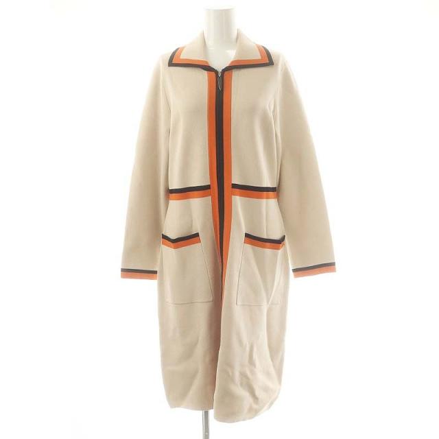 【中古】ラピーヌ ブランシュ ミラノリブバイカラーニットワンピース 38 ベージュ オレンジ 黒 レディース