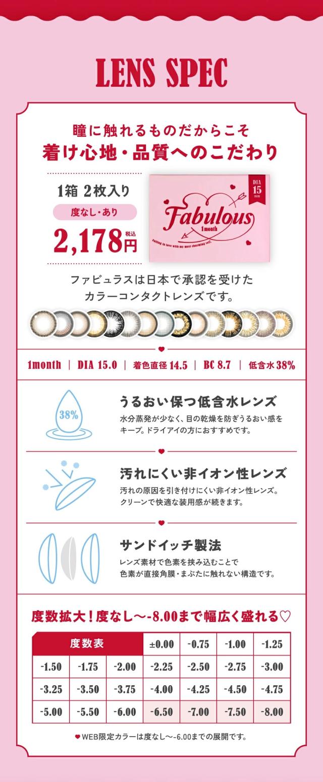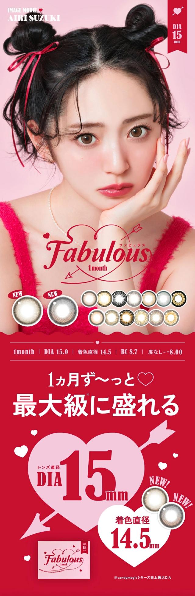 ファビュラス ワンマンス マンスリー カラコン 1ヶ月 度なし 度あり 1箱2枚入り 15.0mm 鈴木愛理 カラーコンタクト コンタクトレンズ FABULOUS 1month 大きい デカ目 盛れる 低含水 ハーフ系 ナチュラル ブラウン ベージュ グレー イエロー オレンジ