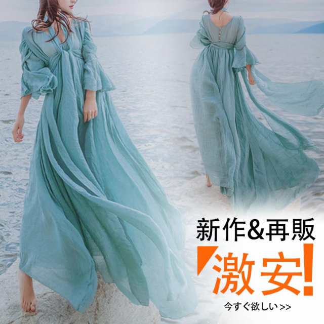 お姫様 ワンピース マキシ丈 リゾート風 フレアワンピース