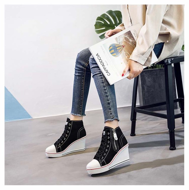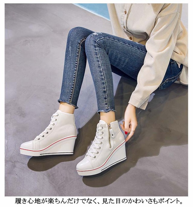 スニーカーブーツ 疲れないスニーカー 大人 女性用 白 春 冬靴 8CM サイドジッパー レディース 厚底 ハイヒール スニーカーブーツ 美脚 靴 夏 秋 美脚