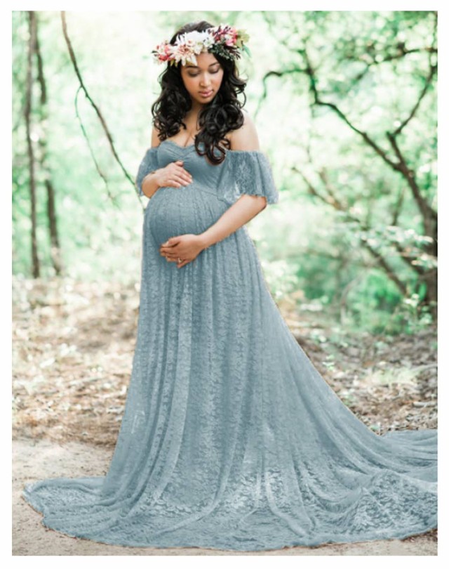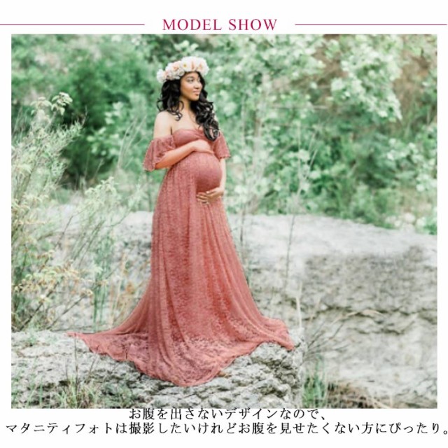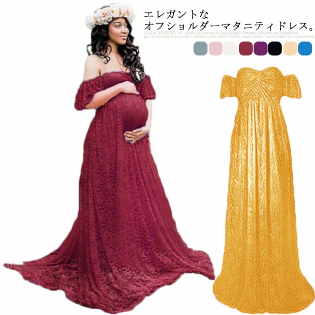 マタニティドレス マタニティフォト ウェディング 妊婦写真 ワンピース オフショルダー ロングドレス レース カラードレス フォーマル 記念写真 妊婦写真