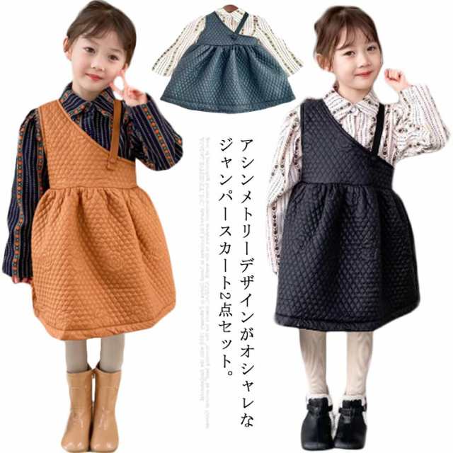 ベビー服 サロペット 2点セット 長袖 ジャンパースカート ブラウス シャツ 子供服 セットアップ 女の子 120 秋冬 暖かい キッズ 80 90 100 110 裏起毛