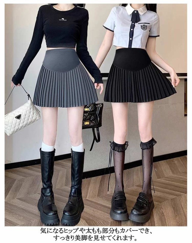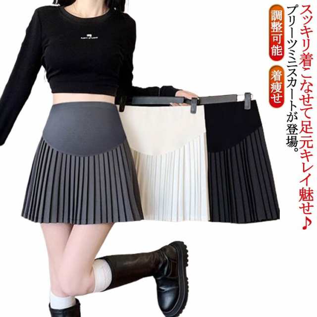 プリーツスカート 産後 ミニスカート 膝丈 調整可能 送料無料 ウエストゴム インナーパンツ付き スカート 産前 マタニティ 美脚 脚長 着痩せ 春夏 ショートスカート 上品 エレガント 大人可愛い 無地 妊婦服 オフィス