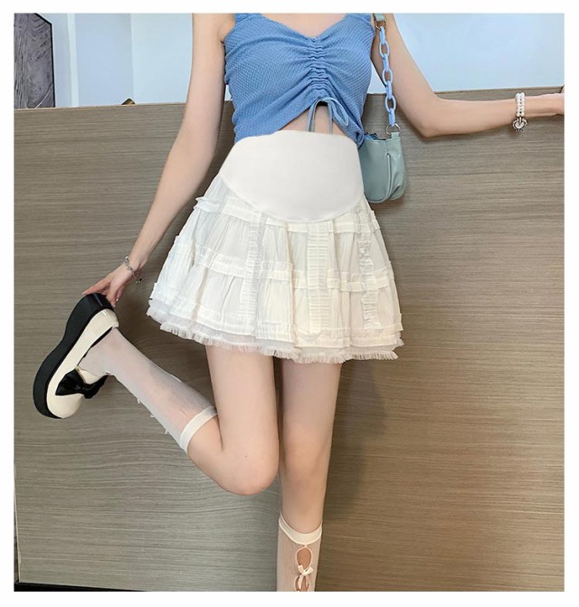 送料無料 膝丈 送料無料 ミニスカート マタニティ スカート ウエストゴム ショートスカート 調整可能 美脚 脚長 痩せ見せ 産前産後 春夏 エレガント シンプル 大人可愛い 妊婦服 オフィス