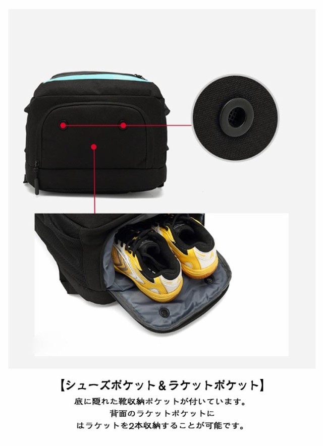 レディース テニスラケットバッグ ラケットバッグ リュック 2本用 撥水 バックパック メンズ リュックサック スポーツバック 2本バドミントン テニスバッグ バドミントンバッグ ラケット ケース スポーツ ラケット2本収納 靴収納 旅行用 多機能型