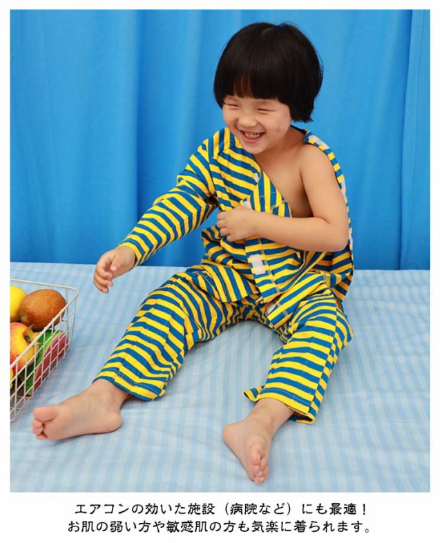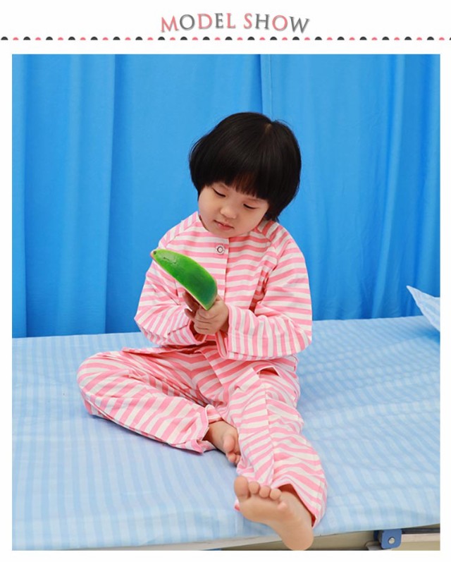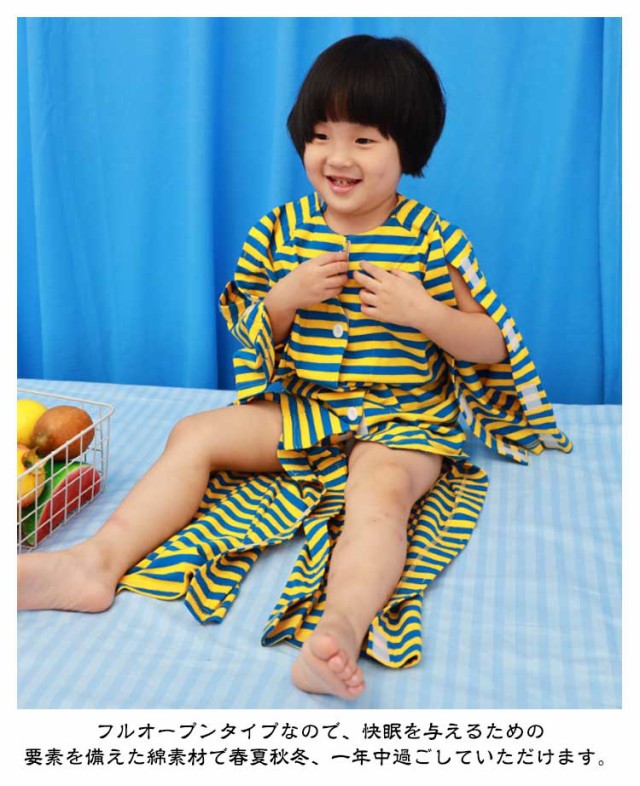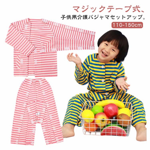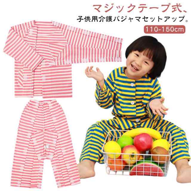 | マジックテープ式、子供用介護パジャマセットアップ。 フルオープンタイプなので、快眠を与えるための要素を備えた綿素材で春夏秋冬、一年中過ごしていただけます。 エアコンの効いた施設(病院など)にも最適!お肌の弱い方や敏感肌の方も気楽に着られます。 | |